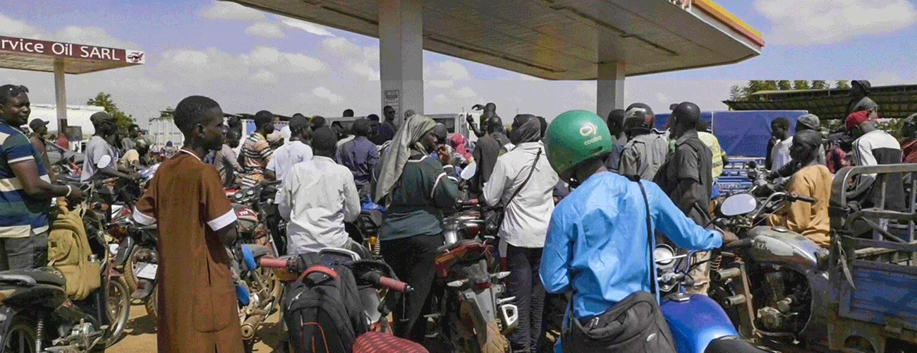 People queue with their motorcycles at a gas station amid a fuel shortage in Bamako Mali, Tuesday, Oct 7, 2025. AP Photo.